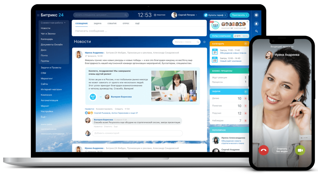 Запросы из почты, соцсетей, сайта, входящих звонков и других каналов продаж попадают в CRM и распределяются между менеджерами.